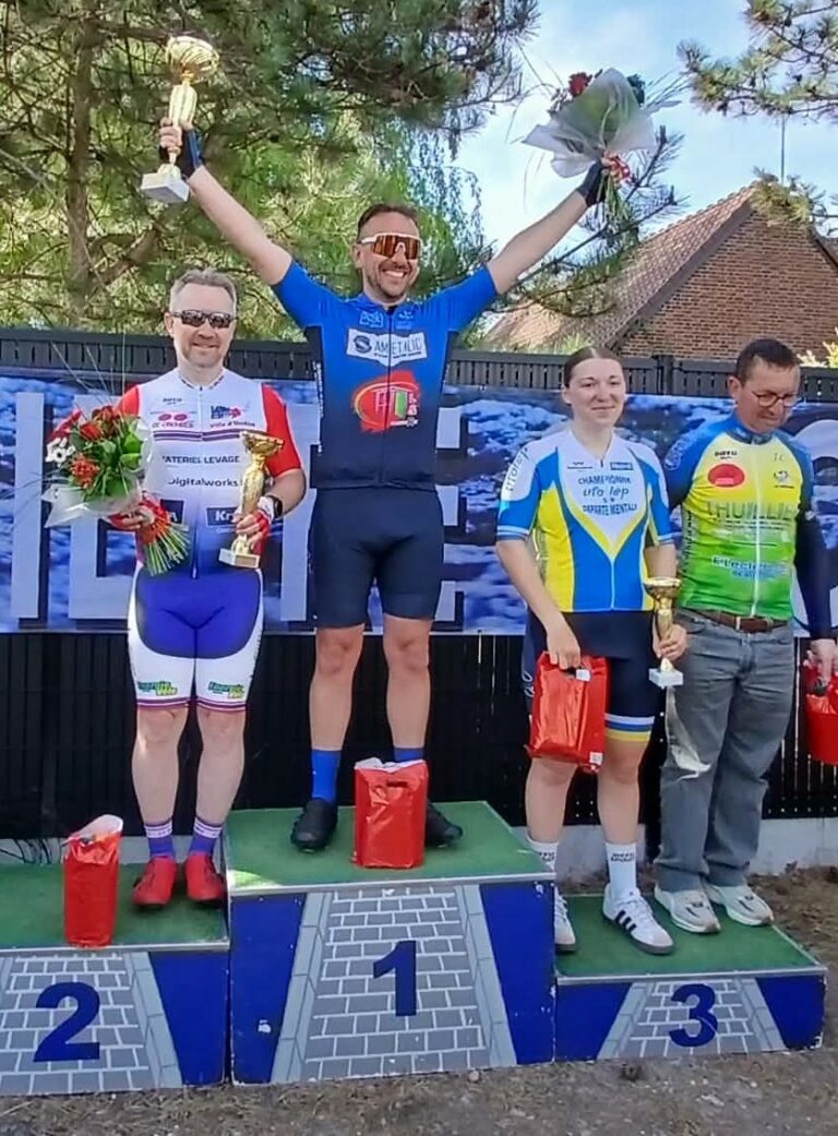 Samedi à Taisnières sur Hon, sur un très beau circuit vallonné, mais balayé par un vent violent et par un temps glacial, Louis Dion termine à une superbe 3ème place…