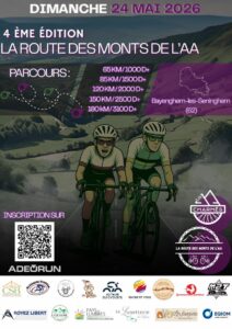 EVT-20260510/1LA LEGENDE (route) avec 220 km, dont 54 km de secteurs pavés, reste la randonnée la plus longue de ce type en France. Quant au RAID (vtt) les participants de l’édition 2025 ont pu déjà se mesurer au nouveau parcours. Pour que tous puissent vivre cette expérience particulière une distance de 45 km a été introduite en route et vtt. Ce sont donc cinq circuits route (220-165-130-75-45 km) et trois vtt (130-70-45) qui sont proposés. Sortie club du dimanche S19Sortie club du dimanche S19Heure/min: 00:00