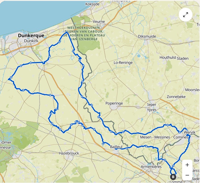 - 65km : Pour cela tourner à droite en entrant dans Arleux direction Bugnicourt pour y retrouver la trace GPX