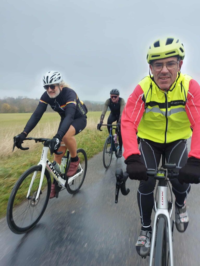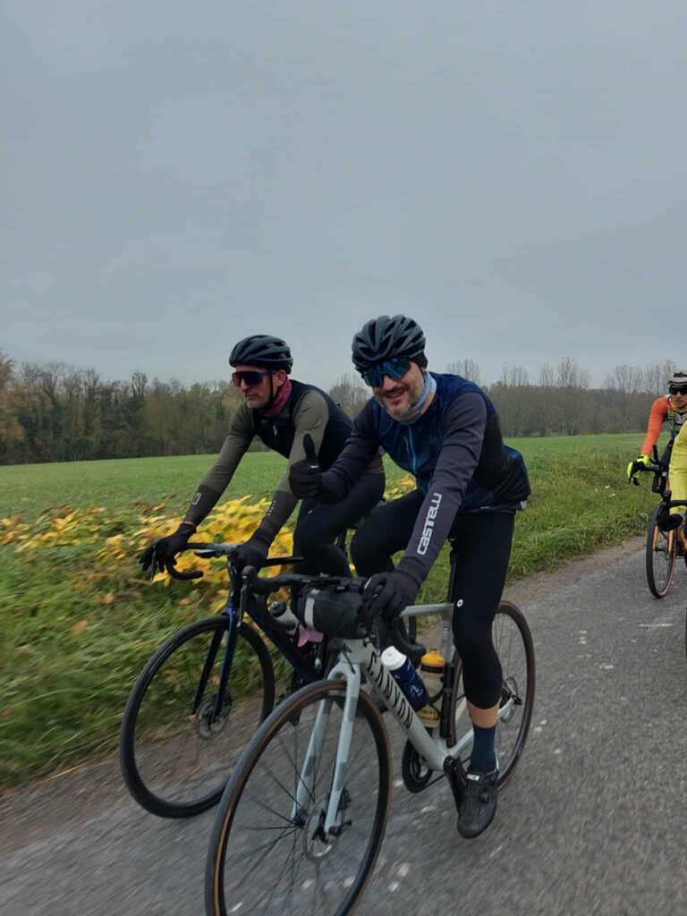 Ce fut une agréable journée de vélo, même si nous avons eu un peu de pluie peu après avoir atteint le point de non-retour. Merci à mes compagnons de route et félicitations à Val Edt la seule féminine du groupe qui a tenu l’allure sans problème.