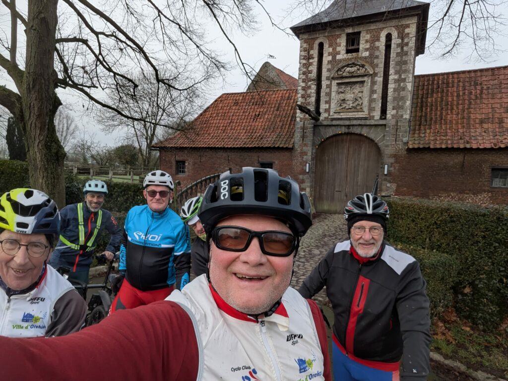 Dès le départ, nous avons emprunté les chemins où se déroule le traditionnel cyclo-cross du club début octobre avant d’enchaîner avec les voies agricoles de la plaine Orchies-Coutiches. Après une portion bitumée de transition, le groupe a eu le loisir d’emprunter les très belles voies vertes de la Pévèle près des villages de Bersée, Mérignies , Pont-à-Marcq et Ennevelin avec une petite pause photo à la ferme d’Aigremont.